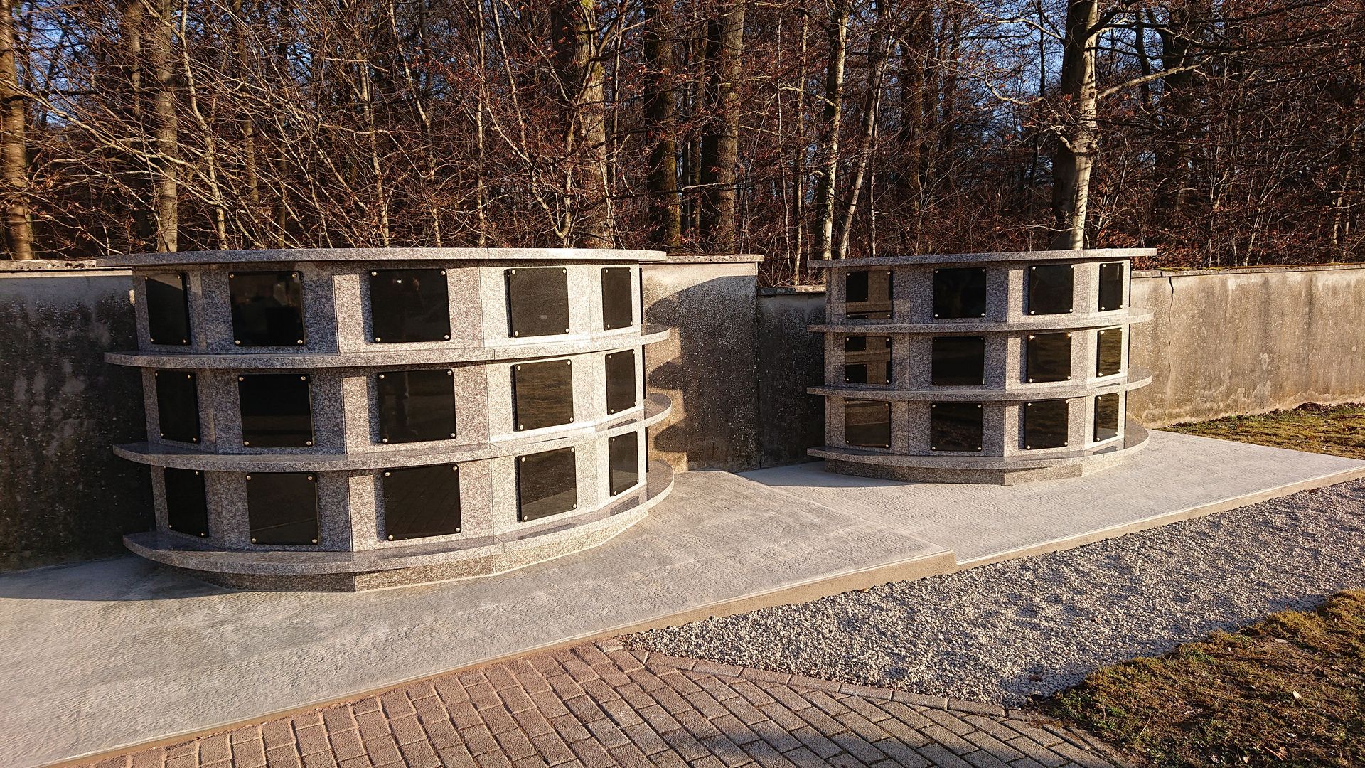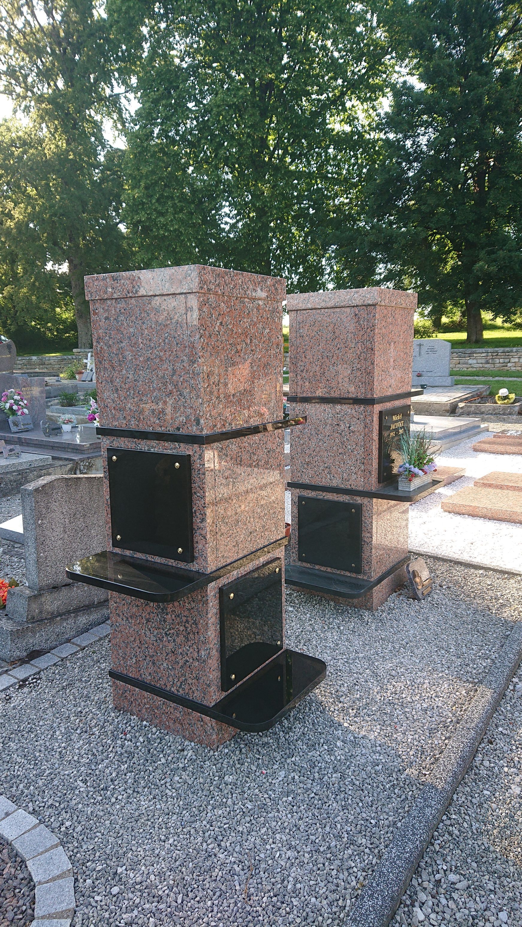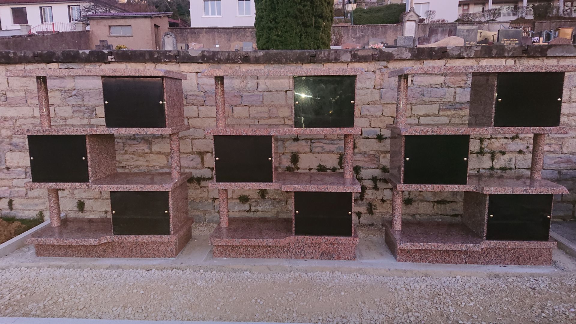 - Des columbariums (dépôt d'urnes dans des réceptacles hors-sol)